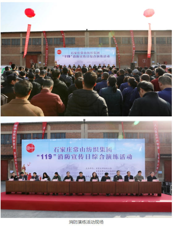 為進(jìn)一步加強(qiáng)企業(yè)職工消防安全教育,增強(qiáng)消防安全責(zé)任主體意識(shí),推動(dòng)企業(yè)職工全員性消防工作的開(kāi)展,11月9日,在“119”消防宣傳日這個(gè)特殊的日子里,由石家莊市紡織工會(huì)、石家莊常山紡織集團(tuán)、常山紡織集團(tuán)工會(huì)主辦,常山紡織集團(tuán)供銷(xiāo)公司承辦的石家莊常山紡織集團(tuán)“119”消防宣傳日綜合演練活動(dòng)圓滿舉行。此次消防演練活動(dòng)是落實(shí)黨的十九大提出的樹(shù)立安全發(fā)展理念,弘揚(yáng)生命至上、安全第一的思想,以及習(xí)近平總書(shū)記關(guān)于加強(qiáng)安全生產(chǎn)工作的重要指示精神的具體體現(xiàn)。