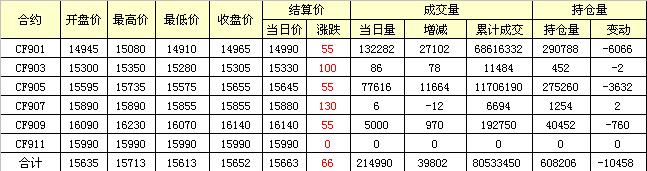 主力CF901合約當(dāng)日交易走勢(shì)圖