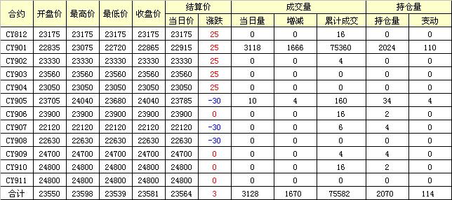 主力CY901合約當(dāng)日交易走勢