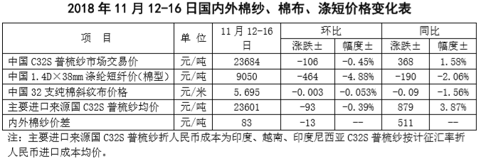 附件2:2018年11月12-16日國內(nèi)外棉紗價格變化表