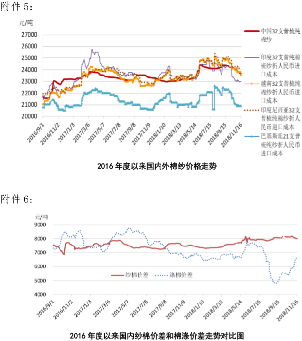 附件5:2016年度以來國內(nèi)外棉紗價格走勢圖