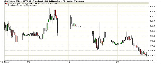 11月20日受美元走強(qiáng)、美股及外圍市場(chǎng)普遍收跌以及轉(zhuǎn)倉(cāng)壓力等因素影響,紐約期棉市場(chǎng)再次全面收跌。1812合約結(jié)算價(jià)75.27美分,跌61點(diǎn);1903合約結(jié)算價(jià)77.43美分,跌62點(diǎn);1905合約結(jié)算價(jià)78.67美分,跌65點(diǎn)。當(dāng)日3月合約平穩(wěn)開(kāi)盤,上半場(chǎng)到達(dá)當(dāng)日高點(diǎn)78.37美分/磅后受賣盤打壓回落,跌勢(shì)一直延續(xù)到盤終,再次以陰跌收盤。12月合約將于11月26日(下周一)進(jìn)入第一交割通知日,轉(zhuǎn)倉(cāng)交易活躍;期棉市場(chǎng)本周四休市一天,預(yù)計(jì)短期內(nèi)價(jià)格仍將維持弱勢(shì)。外圍美元指數(shù)走強(qiáng),玉米、大豆和小麥期貨全線走低。美股遭血洗,道指大跌550點(diǎn),回吐年內(nèi)全部漲幅,標(biāo)普跌1.82%,納指跌1.70%。