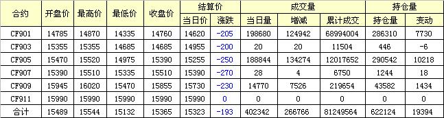 主力CF901合約當(dāng)日交易走勢(shì)圖
