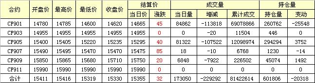 主力CF901合約當(dāng)日交易走勢圖