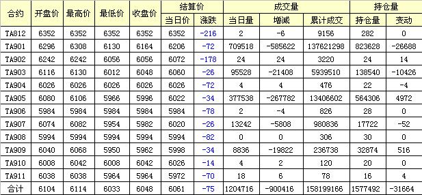 主力TA901合約當(dāng)日交易走勢(shì)
