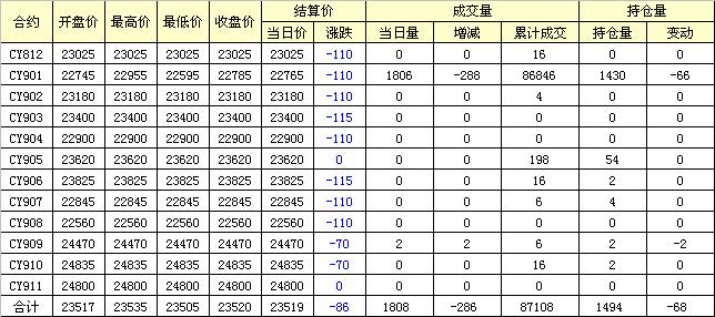 主力CY901合約當(dāng)日交易走勢