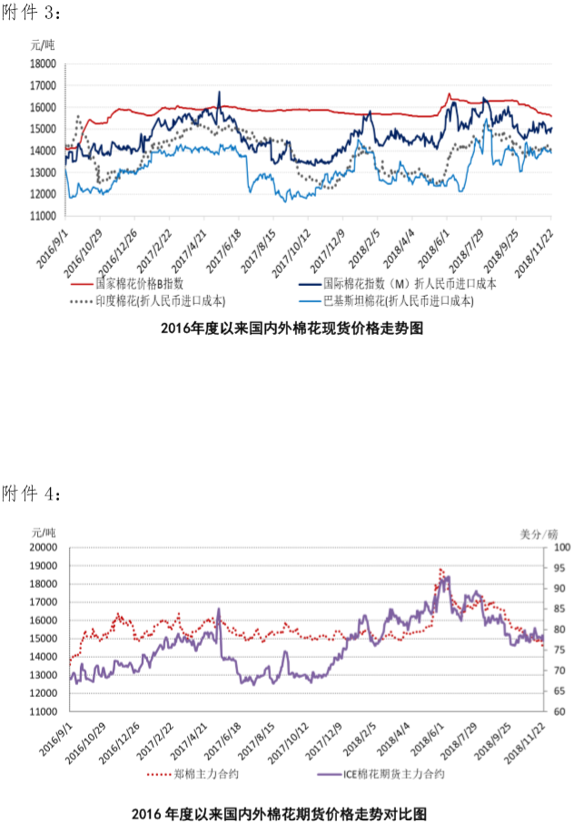 附件3:2016年度以來國內(nèi)外棉花現(xiàn)貨價格走勢圖