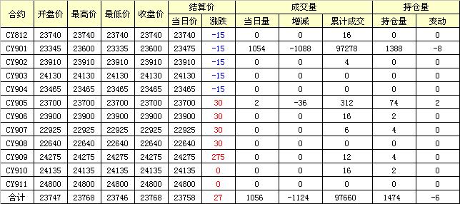 主力CY901合約當日交易走勢