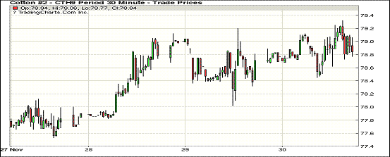 30日紐約期棉市場(chǎng)全面收漲。1903合約結(jié)算價(jià)78.91美分,漲23點(diǎn);1905合約結(jié)算價(jià)79.95美分,漲20點(diǎn);1907合約結(jié)算價(jià)81.00美分,漲20點(diǎn)。其他合約上漲8-27點(diǎn)不等。當(dāng)日3月合約微幅高開,開盤后交易重心受支撐上行,高點(diǎn)處賣盤入場(chǎng),市場(chǎng)承壓走低,至當(dāng)日低點(diǎn)78.45美分處賣盤發(fā)力,交易重心受支撐走高,后受獲利了結(jié)盤壓力市場(chǎng)自高位回落,至收盤胡維持震蕩運(yùn)行態(tài)勢(shì),最終扭轉(zhuǎn)前一日跌勢(shì),以小幅上漲收盤。目前市場(chǎng)的目光都聚焦在即將進(jìn)行的習(xí)特會(huì),均期待這次會(huì)晤將使中美貿(mào)易關(guān)系有所緩和,提振市場(chǎng)。外圍美元指數(shù)上漲,玉米、大豆和小麥期貨上漲。美股三大股指齊收漲。