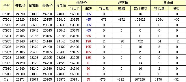 主力CY901合約當日交易走勢
