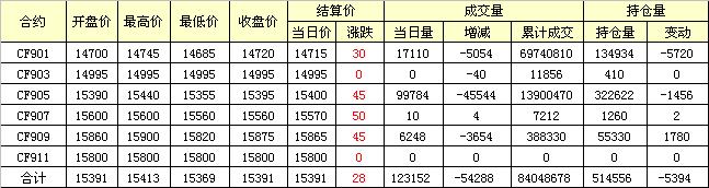 主力CF901合約當(dāng)日交易走勢圖