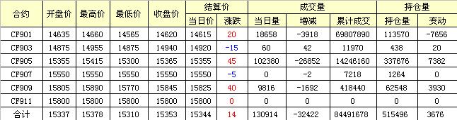 主力CF901合約當(dāng)日交易走勢(shì)圖