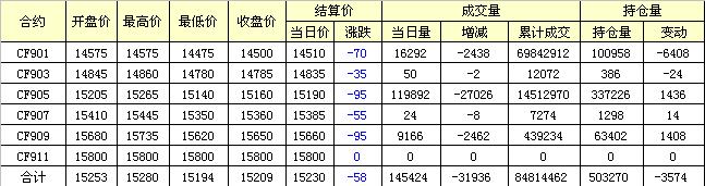 主力CF901合約當日交易走勢圖