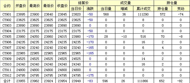 主力CY901合約當(dāng)日交易走勢