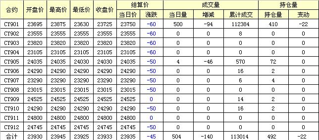 主力CY901合約當日交易走勢