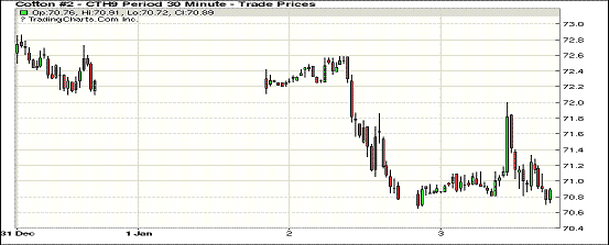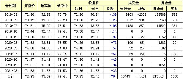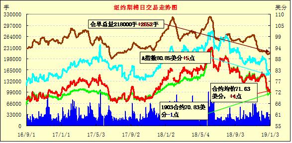 3日,有關(guān)中國購買了幾船美國大豆的消息在谷物市場掀起波瀾,紐約期貨盤中跟風(fēng)走高,但隨后美國政府關(guān)門繼續(xù)讓市場對基本面情況心生擔(dān)憂,市場熱情迅速退卻,價格基本吐出全部漲幅,除3月合約微跌以外,其余合約僅微幅收漲。當(dāng)日3月合約70.83美分,跌1點(diǎn),5月合約72.27美分,漲2點(diǎn)。成交量32201手,較上個交易日增加16758手。截至1月2日收盤的持倉量為218000手,增加2852手。市場關(guān)注1月7日的新一輪中美貿(mào)易談判。