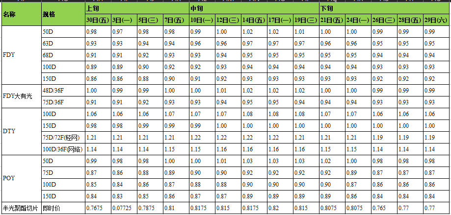 從月底市況分析:雖下游布市交易處在淡季狀態(tài),但PTA、MEG價(jià)格屬于底部震蕩調(diào)整,部分滌綸長絲進(jìn)入處于邊際和微虧面上,考慮到春節(jié)走近因素,聚酯工廠滌綸長絲出貨較強(qiáng),因此1月滌綸長絲也不排除絲價(jià)有小范圍調(diào)整行情,但下游有年前備料跡象,因此聚酯工廠拋售優(yōu)惠出貨趨勢(shì),成交量將有上升態(tài)勢(shì),滌綸長絲價(jià)格漲跌最終取決于原料市場變化。