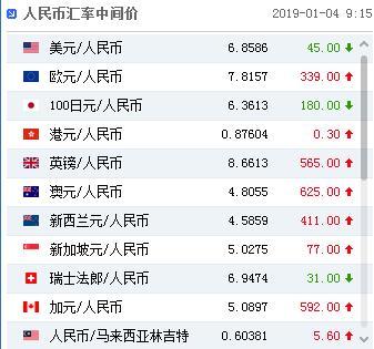 1月4日電據(jù)中國外匯交易中心網(wǎng)站消息,1月4日人民幣對美元匯率中間價為6.8586元,上調(diào)45個基點。