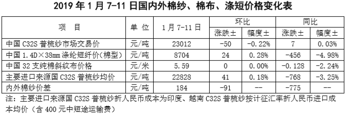 附件2:2019年1月7-11日國內(nèi)外棉紗價格變化表