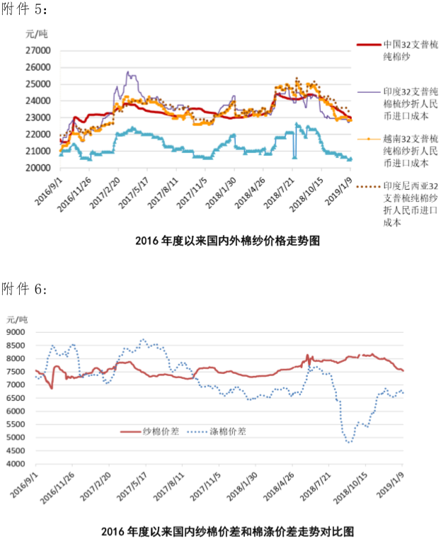 附件5:2016年度以來國內(nèi)外棉紗價格走勢圖
