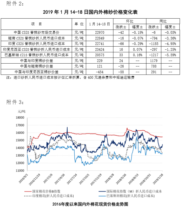 附件1:2019年1月14-18日國內(nèi)外棉花價(jià)格變化表