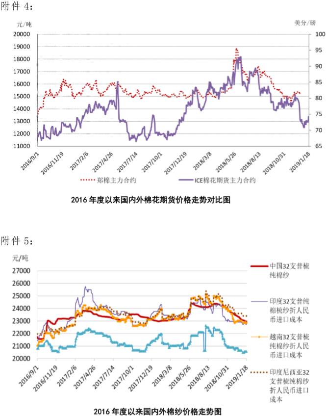 附件5:2016年度以來國內(nèi)外棉紗價(jià)格走勢圖