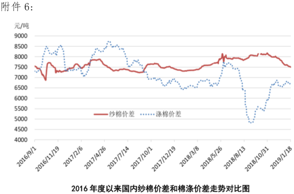 附件6:2016年度以來國內(nèi)紗棉價(jià)差和滌棉價(jià)差走勢對(duì)比圖