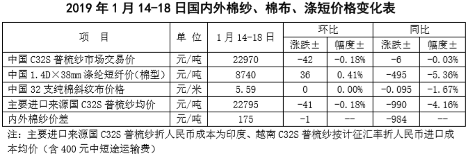 附件2:2019年1月14-18日國內(nèi)外棉紗價(jià)格變化表