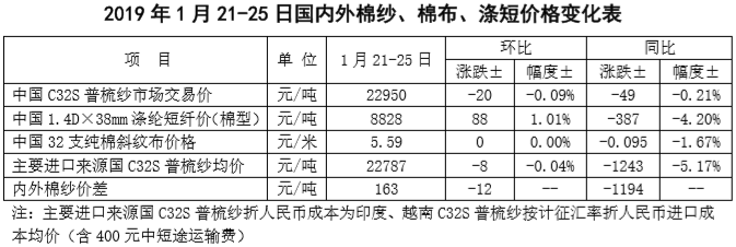 附件2:2019年1月21-25日國(guó)內(nèi)外棉紗價(jià)格變化表