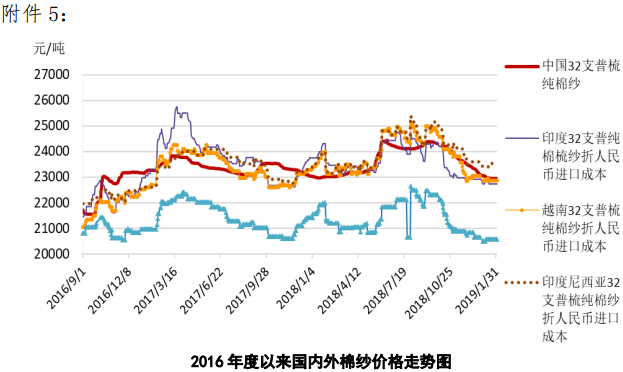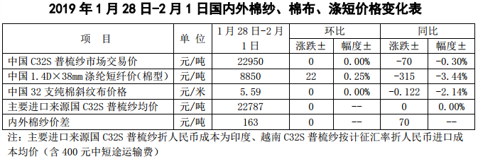 附件2:2019年1月28日-2月1日國內外棉紗價格變化表