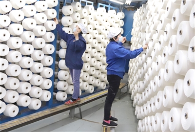 2月11日,春節(jié)假期結(jié)束后首個(gè)工作日,海安市紡織企業(yè)紛紛復(fù)工,力爭實(shí)現(xiàn)新年“開門紅”。圖為聯(lián)發(fā)紡織工人在車間里忙碌。