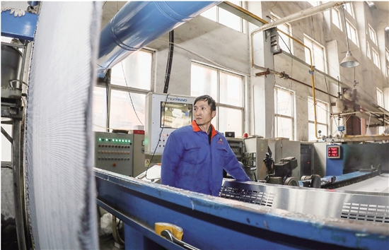 日前來到馬鞍鎮(zhèn)發(fā)現(xiàn),各家印染企業(yè)紛紛開足馬力,力奪首季“開門紅”。在嘉華印染生產(chǎn)車間,企業(yè)各個車間、生產(chǎn)線一派繁忙景象?!澳壳榜R鞍鎮(zhèn)印染企業(yè)復(fù)工率達(dá)到100%,為完成1季度目標(biāo),實(shí)現(xiàn)新年‘開門紅’奠定良好開局?!瘪R鞍鎮(zhèn)相關(guān)負(fù)責(zé)人說。圖為嘉華印染工人正在車間內(nèi)忙碌工作。