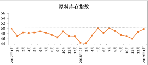 1月原料庫存指數(shù)49.73,與去年12月相比增加1.01。跟蹤企業(yè)數(shù)據(jù)顯示,1月企業(yè)原料庫存環(huán)比增加6.24%。其中原棉庫存環(huán)比增加6.19%,進(jìn)口棉庫存環(huán)比增加23.34%,非棉纖維庫存環(huán)比增加6.44%。主要原因:一、在年后原料價格上漲預(yù)期下,部分企業(yè)抓緊最后時間囤貨;二、受春節(jié)假期和市場信心影響,企業(yè)生產(chǎn)放緩,原料消耗減少;三、配額使用期限將至,企業(yè)加快進(jìn)口棉清關(guān)。2月原料價格回升幅度不大,企業(yè)補(bǔ)庫意愿不強(qiáng),預(yù)計2月原料庫存指數(shù)變化幅度不大。