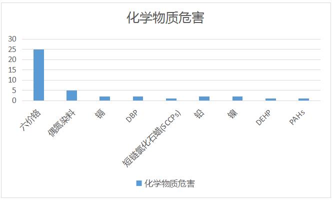 2018年紡織品類產(chǎn)品涉及到的化學(xué)物質(zhì)主要包括:六價鉻、鎳、鎘、DBP、偶氮染料,PAHs,DEHP等物質(zhì)。