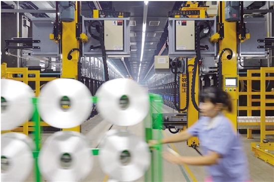 浙江天圣化纖有限公司今年1季度生產(chǎn)喜人,通過“兩化融合”“機(jī)器換人”,推動(dòng)由“化纖制造”向“化纖智造”轉(zhuǎn)型發(fā)展,致力打造工業(yè)4.0標(biāo)準(zhǔn)工廠。