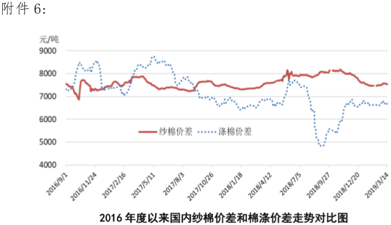 附件6:2016年度以來國內(nèi)紗棉價(jià)差和滌棉價(jià)差走勢(shì)對(duì)比圖