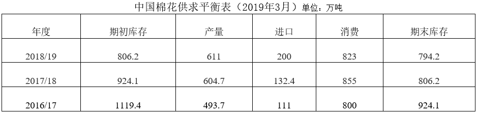 春節(jié)假期結(jié)束后,紡織企業(yè)陸續(xù)開(kāi)工,紡織品產(chǎn)銷略有下降,紗線和布庫(kù)存減少,企業(yè)原料庫(kù)存下降,新棉采購(gòu)逐漸活躍。中國(guó)棉花協(xié)會(huì)預(yù)測(cè):2018/2019年消費(fèi)量823萬(wàn)噸,與前期預(yù)測(cè)持平。