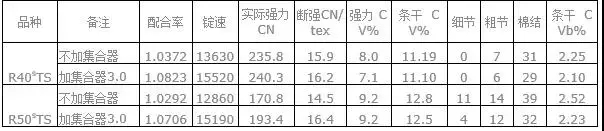 同時(shí)選擇合適的器材,對(duì)產(chǎn)質(zhì)量也有一定的影響,使用細(xì)紗集合器,也可以適當(dāng)提高紡紗速度,集合器在我公司得到了很好的應(yīng)用效果。見表3。