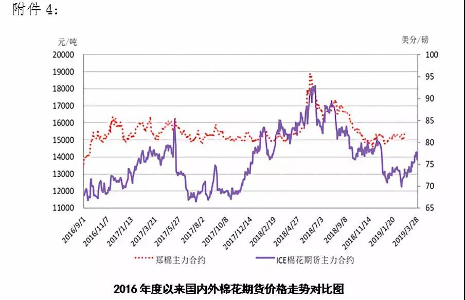 階段性行情難以持續(xù),國內(nèi)棉價(jià)振蕩盤整為主。1-2月全國規(guī)模以上工業(yè)企業(yè)實(shí)現(xiàn)利潤總額同比下降14.0%,其中紡織業(yè)下降11.3%,4月起減稅降費(fèi)政策開始實(shí)施將利于工業(yè)利潤修復(fù),近期市場主要關(guān)注第九輪中美經(jīng)貿(mào)高級(jí)別磋商。基本面上,據(jù)監(jiān)測系統(tǒng)數(shù)據(jù)顯示,截至3月29日累計(jì)加工皮棉591萬噸(產(chǎn)量607.5萬噸),累計(jì)銷售皮棉343萬噸,銷售率58%,較上年同期下降1個(gè)百分點(diǎn)。鄭棉倉單較上周減少約1.5萬噸至67.06萬噸,仍是去年倉單量的3倍,陳棉倉單已全部流出。近期到港的進(jìn)口棉也逐漸流入現(xiàn)貨市場。進(jìn)入3月下游多數(shù)企業(yè)棉紗訂單較年前和2月略有轉(zhuǎn)好,但從上周開始,銷售再次出現(xiàn)下滑,棉紗價(jià)格上漲后再次轉(zhuǎn)跌,顯然下游棉布需求并不配合,棉布老訂單完成后,新訂單跟進(jìn)不暢。4月1日起日本不再給予中國輸日貨物普惠制關(guān)稅優(yōu)惠,終端服裝外貿(mào)企業(yè)將面臨調(diào)整壓力。短期內(nèi)國內(nèi)棉花供應(yīng)端基本充裕,消費(fèi)回暖乏力,階段性行情難以持續(xù),棉價(jià)仍以振蕩為主,播種季天氣變化因素增加行情彈性空間。