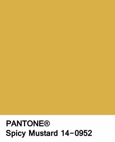Pantone芥末黃(14-0952,spicymustard),取自黃芥末的自然色,比鮮明亮眼的黃色,減少了彩度及亮度,色調(diào)柔和。