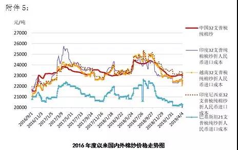 三、國(guó)內(nèi)棉紗價(jià)格小幅下跌,外紗價(jià)格上漲