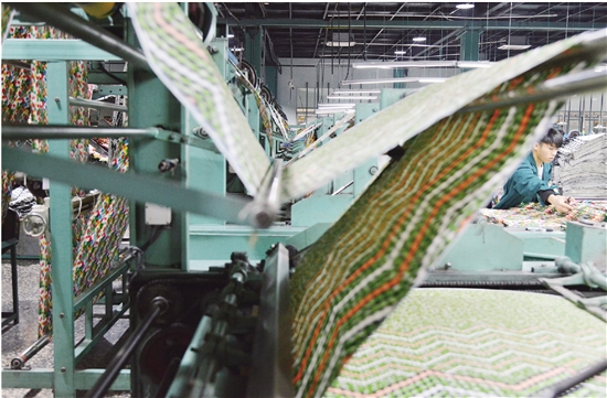 昨天在浙江寶紡印染有限公司里,從生產(chǎn)線上下來的印染產(chǎn)品直接包裝發(fā)貨,實(shí)現(xiàn)染整、包裝一條龍。