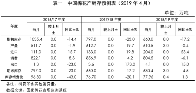 本期產(chǎn)需預(yù)測較上月主要變化如下:2018/19年度產(chǎn)量調(diào)增3萬噸至610.5萬噸,期末庫存調(diào)增3萬噸至630.4萬噸。詳見下表。