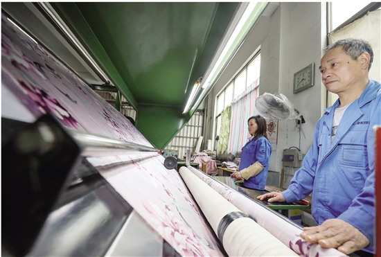 近日,在浙江海虹印染有限公司印染車間,一匹匹色澤艷麗的絲綢正在下線。據(jù)了解,海虹印染是一家專業(yè)從事真絲、化纖、滌棉針紡面料的印花企業(yè),公司投資配置6套功能齊全、自動化程度高、使用方便的糊料制備和電腦調(diào)漿系統(tǒng),調(diào)制色漿的全過程采用計(jì)算機(jī)來控制操作,從而使得絲綢印染色澤更加艷麗,更加節(jié)約成本。