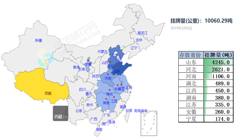 中國儲備棉管理有限公司定于5月6日上市銷售儲備棉重量10060.293噸,共52捆。