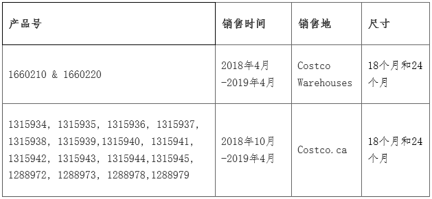 此次召回的產(chǎn)品于2018年4月-2019年4月在加拿大銷售,此次召回涉及產(chǎn)品約96286件。