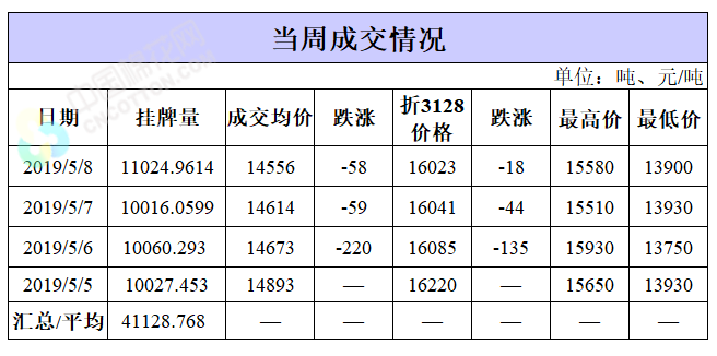 截至5月8日累計輪出銷售資源4.1萬噸,成交最高價15930元/噸,最低價13750元/噸。