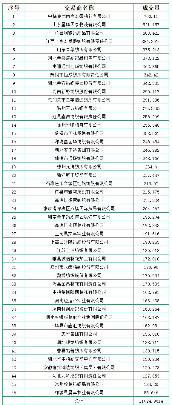 新疆棉成交均價14891元/噸,新疆棉折3128價格16177元/噸,新疆棉加價幅度1297元/噸。