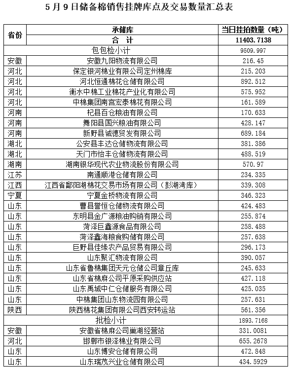 附件:1.5月9日上市銷(xiāo)售儲(chǔ)備棉數(shù)據(jù)明細(xì)表(包包檢)