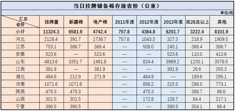 中國(guó)儲(chǔ)備棉管理有限公司定于5月10日上市銷(xiāo)售儲(chǔ)備棉重量11324.2619噸,共64捆。
